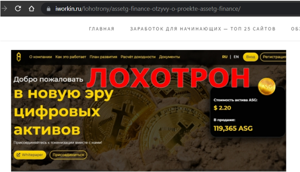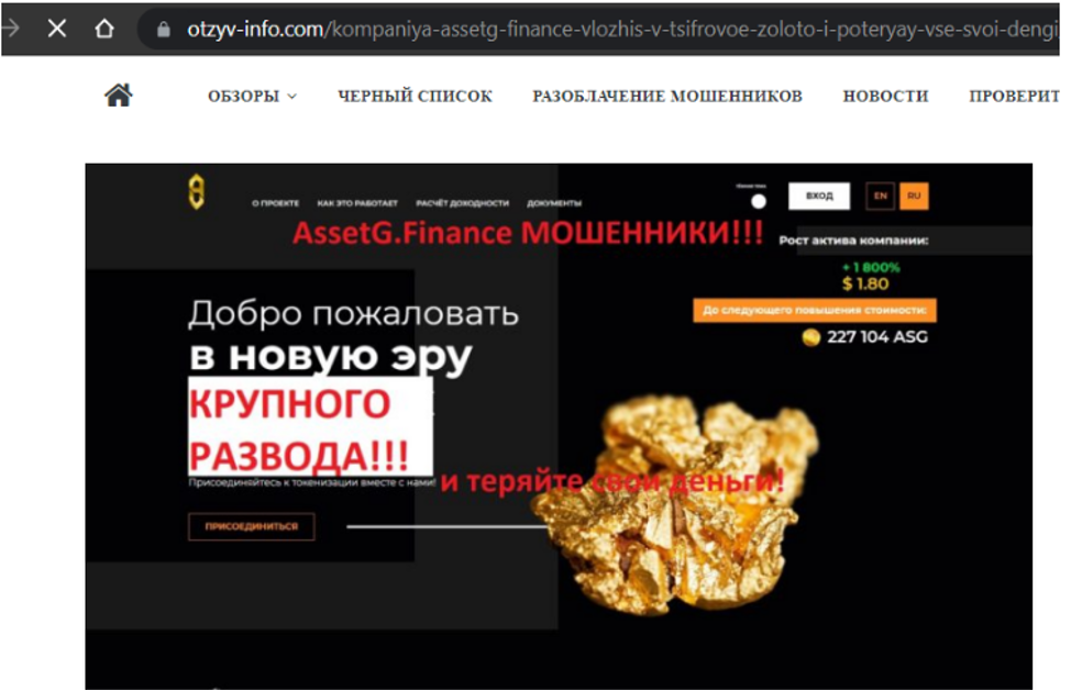 Другими словами, занимается тем, что добывает ценные металлы, например, золото, после чего оцифровывает их, создавая собственные токены. Поэтому монеты от AssetG.Finance якобы обеспечены таким солидным активом, как и золото, соответственно, вызывают уверенность в том, что токены будут постоянно расти в цене. Что же происходит на самом деле – читайте в нашем расследовании.
