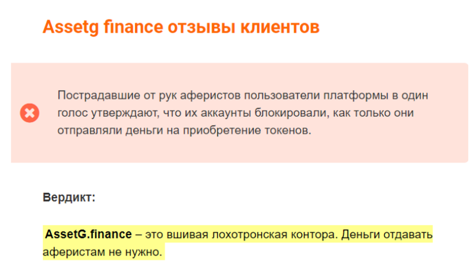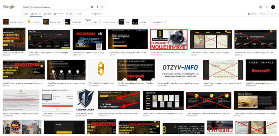 Заходим в google и вбиваем в поиск “AssetG Finance разоблачение”: