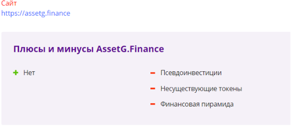 На самом деле, мы имеем дело c компанией, чья структура, напоминает своими методами работы и стилем менеджмента – организованную преступную группу. Попросту говоря – наперсточники. Только в отличии от ОПГ из лихих 90-х, целью AssetG Finance являются не зеваки на рынке или вокзале, а крипто-инвесторы. Наперстки же они сменили на токены. Однако суть от этого не поменялась. Далее детальнее: