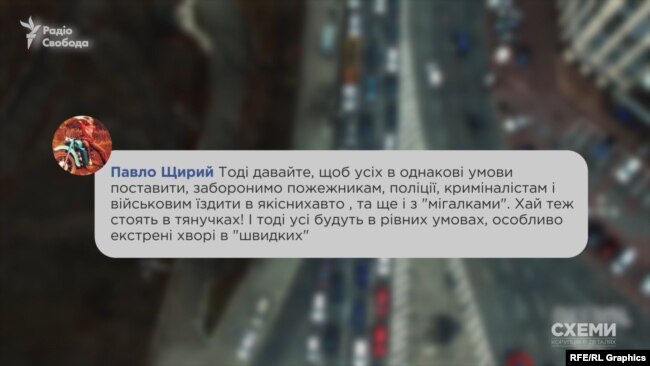 Наприклад, під дописом щодо сюжету «Схем» про те, як Яценюку даїшники забезпечують безперешкодний проїзд, поки кияни стоять в заторах – Щирий залишив такий відгук: