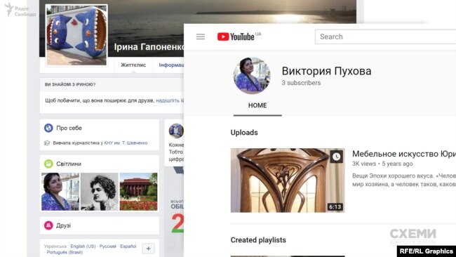 А в Ірини Гапоненко, приміром, типова сторінка – з однією особистою світлиною. І та – з аватарки на ютубі під чужим ім’ям.