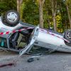 На повороті вантажівка зачепила легковик – водій не впорався із керуванням і автівка вилетіла на узбіччя й перекинулася. У салоні машини було четверо людей.