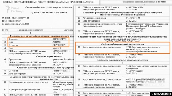 Витяг з російського реєстру фізичних осіб-підприємців про Антона Дорноступа
