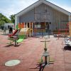 Яскраве доповнення подвір’я – дитячий майданчик із гойдалками, каруселями та спеціальним гумовим покриттям. Тротуарні доріжки вимощені плиткою.