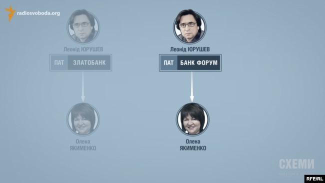 Наприкінці 2014-го «Укрпошта» несподівано вирішила покласти на депозит понад 56 мільйонів гривень у невеликий банк – «Златобанк». Офіційно «Златобанк» контролювала голова наглядової ради Олена Якименко. Однак є вагомі підстави припускати, що банк пов’язаний із Леонідом Юрушевим, оскільки раніше Якименко працювала саме на Юрушева у банку «Форум», коли ним володів він. А сам «Златобанк» був створений незабаром після того, як Юрушев продав «Форум» іноземним інвесторам. І саме «Златобанк» почав обслуговувати бізнес Юрушева.