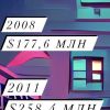 На 2011 рік, за даними державного судового реестру, сума кредиту становила вже $88,4 млн та 1,35 млрд грн. За курсом того часу сумарно це становило близько $258,39 млн.