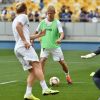 На полі спортивної арени численні вболівальники побачили 23 гравці. Воротар “Динамо Київ” Денис Бойко через біль у спині не брав участь у вправах, втім був присутнім на трибуні стадіону. А от викликаний до збірної Євген Коноплянка на тренування не прийшов, бо був зайнятий переходом до “Шахтаря”, свого нового клубу. Після тренування гравці поспілкувалися із вболівальниками та віддячили їм за підтримку.